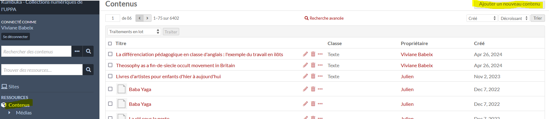 Cliquer sur Contenus, puis sur Ajouter un nouveau contenu.