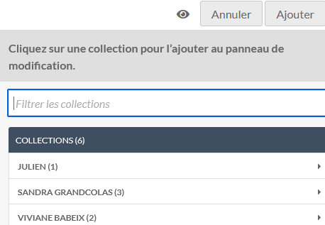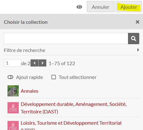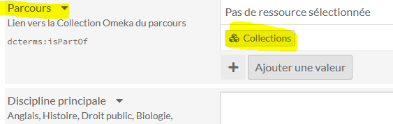 Filtrer les collections, indiquer le nom de la collection, puis choisir le parcours.2ème possibilité : cliquer sur son nom puis sur la mention souhaitée.